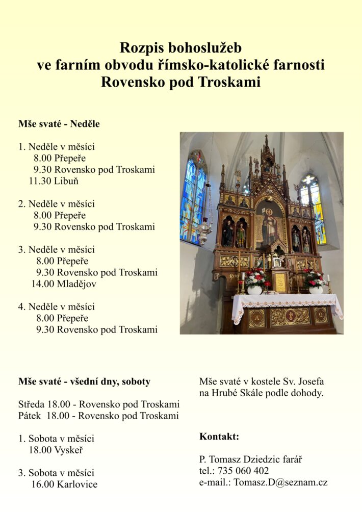 Rozpis bohoslužeb farnosti Rovensko p. Tr. od ledna 2026