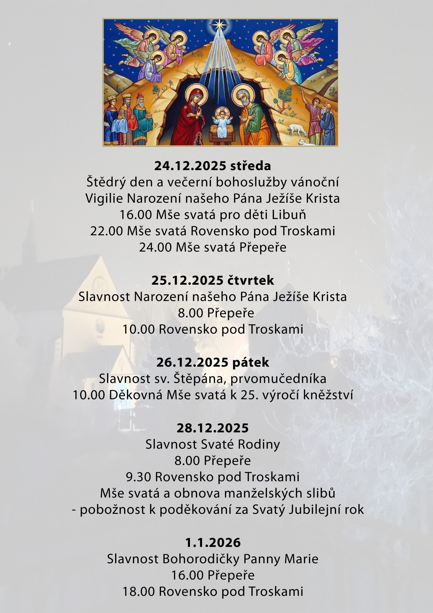 Rozpis bohoslužeb – leden 2025